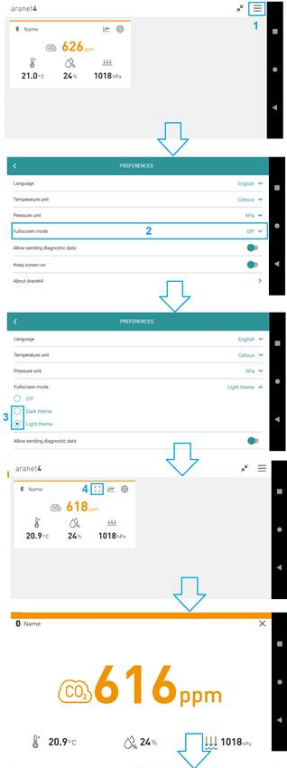 If you have both devices compatible with Miracast, then once the Aranet4 sensor is paired to the Aranet4 application on the Android mobile device, you can display the measurement data from the sensor in full-screen mode on the app. This can be done in the following way: